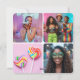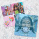 Create a stylish personalized greetings card using five of your favorite photos. It's a fun way to creatively display your pictures! The front of the card features a semi-opaque photo over a colored background, with trendy typography you can customize with your own text or slang. You can adjust the photo's opacity and the background color with the design tool. The back of the card showcases four photos in a simple grid with rounded squares. This modern, retro style is perfect for kids, teenagers, friends and family. It's an adaptable template, ideal for Christmas, holidays, birthdays, and other special occasions. Colors: white text, blue background. Available as a printed card or a digital download.
