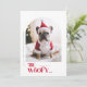 Send some holiday cheer with this adorable “Be Woofy” card featuring a French bulldog in a Santa outfit framed by a cozy arch photo design. Perfect for dog lovers, pet parents, or families sharing a festive laugh, this modern minimalist card blends clean white space with a playful red message. Add your family name or greeting for a personal touch. Personalize yours today.