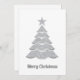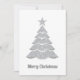 Elegant Christmas card featuring a silver glitter pine tree and “Merry Christmas” in a stylish calligraphy script. The subtle sparkle and minimalist design create a modern yet festive look. Perfect for sending warm holiday wishes with a touch of trendy elegance. A beautiful choice for anyone who loves unique typography, seasonal charm, and a contemporary Christmas aesthetic.