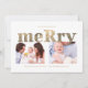 Tarjeta Festiva Modern Gold “Merry” Typography Photo Family