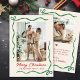 Whimsical Script Two-Photo Merry Christmas Holiday Card with Bow Border. Celebrate the season in style with this elegant red and green two-photo Christmas card. The front features a modern red hand-lettered “Merry Christmas” calligraphy, framed by a delicate illustrated whimsical green coquette bow ribbon on a crisp off white or cream ivory background. The back includes space for your personalized holiday message and an additional photo, accented with a matching bow and a sweet heart doodle. A festive and timeless way to send love and warm wishes to family and friends this Christmas season.