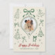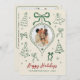 Tarjeta Festiva Modern Hand-Drawn Green Bows Photo Christmas Happy