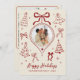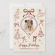 Tarjeta Festiva Modern Hand-Drawn Red Bows Photo Christmas Happy