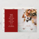 The front pairs your favorite holiday pet portrait with elegant typography and a deep red panel for a timeless Christmas feel. The back continues the polished theme with a matching bow pattern and customizable greeting message.