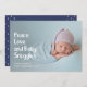 Tarjeta Festiva Modern Peace Love Cute Baby First Christmas Photo