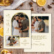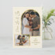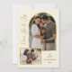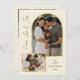 Elegant Gold Arch 3 Photo Peace Love and Joy Christmas Holiday Card. Celebrate the season in style with this elegant family photo Christmas card featuring a modern gold color arch-shaped photo frame. Personalize it with your favorite family photos, family name, and the year on neutral off white or cream beige background. The festive minimalist design is highlighted with elegant faux-gold color "Peace Love and Joy" calligraphy text, creating a warm and timeless look. The back showcases one photo and holiday message template with hand lettered name. A perfect holiday card to share with family and friends in winter holiday season.