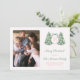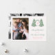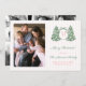 Tarjeta Festiva Modern Preppy Pink Green Monogram Bow Photo