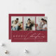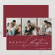 Tarjeta Festiva Modern Script 3 Photo Collage Red Merry Christmas