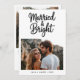 Tarjeta Festiva Modern Script Married & Bright Newlywed Photo