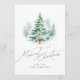 Modern minimalist Christmas card features watercolor pine tree and elegant merriest Christmas script in sage green, modern and simple.