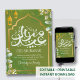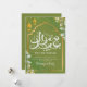 A trendy Eid card featuring a gold-foiled arch frame over a teal watercolor splash with gold leaf accents. A stylish and contemporary way to celebrate the holiday.