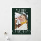 Celebrate the season with our modern trendy photo Christmas Card! This card has a white script photo design and a personal greeting message at the back.