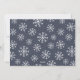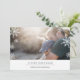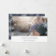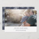 Modern, simple and minimal holiday photo card features your favorite horizontal or landscape oriented photo with a thick white bottom border. Your custom greeting appears in modern midnight blue lettering (shown with "Joyous Hanukkah"), with your family name or names beneath. A subtle snowflake pattern is overlaid over the edges of your photo for festive appeal. Cards reverse to a wintry snowflake pattern in matching midnight blue and white.