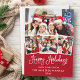 Moderna caligrafía de diversión guión 4 Fotos Felices vacaciones Tarjeta familiar roja
