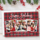 Moderna caligrafía de diversión guión Felices vacaciones 3 tarjeta de vacaciones de foto - Red Plaid