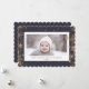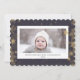 Moderno Blue Elegant Script Snowflakes Bokeh Tarjeta Minimalista de vacaciones. ¡Envíe personalizable y saludos personalizados de vacaciones a amigos, colegas y familia en simples, minimalistas, elegantes, divertidas, festivas y modernas tarjetas fotográficas! Una hermosa imagen de una variedad de copos de nieve dorados de invierno sobre un fondo verde salado rodea tu foto. El saludo " Feliz Navidad " está escrito en caligrafía elegante, y debajo se muestra el mensaje de bienvenida de su personalizado de nombre familiar en tipografía moderna. Invertir para revelar una hermosa imagen de los copos de nieve de invierno dorados sobre fondo verde sabio.
