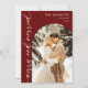 Celebra tu nuevo viaje juntos esta temporada de vacaciones con una impresionante tarjeta que incluye una foto favorita de ti como recién casados. El moderno diseño de arco rojo crea un entorno atrevido y festivo, enmarcando elegantemente tu imagen mientras transmiten tu alegre mensaje de "Merry & Married" en una tipografía elegante. Esta estética contemporánea no sólo resalta tu bello momento sino que también añade un toque de calidez y alegría a tus saludos de vacaciones. Perfecto para compartir con la familia y los amigos, esta tarjeta capta la emoción de su amor mientras se esparce la alegría festiva durante toda la temporada.