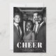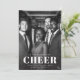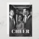 Celebre la temporada con esta tarjeta de vacaciones de negocios moderna en blanco y negro. Con una elegante y profesional foto grupal en blanco y negro, esta tarjeta está diseñada para las empresas que quieran enviar saludos festivos con estilo. El diseño minimalista, el audaz mensaje "Cheer" y el espacio para el logotipo de su empresa en la parte trasera hacen que sea perfecto para transmitir calidez de vacaciones mientras mantiene un tono profesional. Ideal para tarjetas de vacaciones corporativas, esta tarjeta ayuda a fomentar las relaciones con los clientes con un toque moderno y sofisticado.