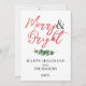 Difunde la alegría de la temporada con esta tarjeta de vacaciones de Modernidad Verde Navideña Alegre y Brillante. Cuenta con la cita Alegre y Brillante en una hermosa tipografía moderna así como con un hermoso verdor. También desea a los destinatarios FELICES FIESTAS de (NOMBRE DE FAMILIA) y del AÑO. ¡Alegren la temporada de todos con esta encantadora tarjeta!