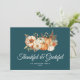 Tarjeta de felicitación moderna de acción de gracias. Con un mensaje cálido y sincero, que sus seres queridos sepan lo mucho que los aprecian. Con una acuarela floral, hermoso diseño de calabaza. Háganles saber que siempre están en sus pensamientos.