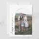 Esta moderna tarjeta de vacaciones de boho arch feliz año nuevo es el sencillo y perfecto saludo de vacaciones. El diseño bohemio en blanco y negro presenta una tipografía industrial única con un estilo vintage minimalista. Personalice la parte delantera de la tarjeta con una foto, su apellido y el año.
