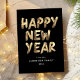 Tarjeta Festiva Moderno Feliz Año Nuevo Negro y Oro No Foto