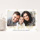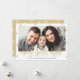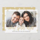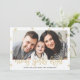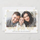 Envíe saludos festivos a la familia y amigos con esta moderna tarjeta fotográfica Making Spirits Bright Christmas. El diseño muestra tu foto horizontal enmarcada en blanco rodeada de estrellas de oro dibujadas a mano. La popular frase de vacaciones "Making Spirits Bright" (Haciendo brillar a los espíritus) se muestra en una versión dorada de moda. Personalice la parte delantera de la tarjeta fotográfica de vacaciones con el saludo y nombre de su personalizado. La tarjeta se invierte para mostrar un patrón de estrella dorada coincidente. La versátil tarjeta se puede usar para Navidades, Hanukkah y Año Nuevo.