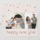 Envíe deseos de Año Nuevo a su familia y amigos con esta moderna tarjeta de vacaciones. Dos fotos en la parte delantera, acompañadas de un elegante tipo simple, y un sencillo patrón de confeti en la parte trasera. El estilo moderno y minimalista hará que las fotos familiares brillen.