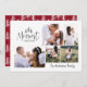 Merriest Navidades rústico multi 4 foto tarjeta de vacaciones. Con texto elegante y moderno y árboles. El color de fondo de Borgoña se puede personalizar.