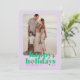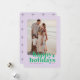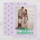 Una tarjeta de vacaciones de foto moderna y brillante con tipografía atrevida en verde sobre un fondo púrpura lavanda colorido con un patrón de estrellas púrpuras en el reverso. La foto, el nombre y el año se pueden personalizar fácilmente para darle un toque personal. Un diseño de Navidad divertido, colorido y contemporáneo para destacar esta temporada de fiestas!