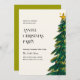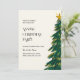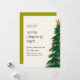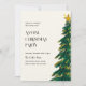 Magnífica invitación moderna y única para fiestas de vacaciones con un bosquejo de árbol de Navidad verde acuarela con una estrella en la parte superior.