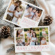 Celebre la temporada con la moderna tarjeta de Navidad de Collage de fotos elegante rojo Feliz Navidad. Este elegante diseño cuenta con un collage de 5 fotos en la parte delantera, con 4 fotos cuadradas rodeando una imagen más grande en el centro. "Feliz Navidad" está bellamente expuesto con letras rojas de moda en un fondo blanco. Personalizar con su apellido y año para un toque personal. La parte trasera ofrece espacio para dos fotos más y un mensaje sincero. Perfecto para mostrar sus preciados recuerdos de una manera sencilla y elegante. Comparte la alegría de las vacaciones con este diseño atemporal y fotocéntrico.