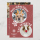 ¡Comparte la alegría de la temporada con nuestra tarjeta de felicitación de fotos de los Navidades de la fiesta de Paw-liday! Este moderno y lúdico diseño presenta dos adorables fotos de perros mascotas con máscaras circulares, rodeadas de un texto festivo que transmite emoción por la cola. La marca de la pata, ligeramente oprimida por la nieve, aporta un toque encantador a un fondo retro retro editable. Gire la tarjeta para revelar un espacio rectangular de fotos familiares y espacio para su mensaje personalizado de Navidades.