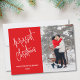 Esta moderna tarjeta de Navidades rojos incluye una plantilla de fotos para que la reemplace con su fotografía, y dice Navidades Merriest en una tipografía de escritura elegante.