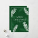 El diseño presenta un fresco blanco y verde sobre un fondo verde oscuro. Una carta moderna y mínima de Navidades. Personalízalo con tus detalles. Una carta de Navidades fina, elegante y de moda.