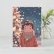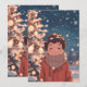 Un niño se levanta en una nevada pacífica, su rostro resplandeciente de alegría mientras los copos de nieve suaves caen suavemente sobre sus mejillas y su pelo. Con los ojos cerrados de felicidad, sonríe serenamente, saboreando la magia silenciosa del momento. El fondo es una escena de Navidades de ensueño, en la que un árbol con una bonita decoración brilla con luces cálidas y adornos brillantes, mientras que la luz suave y dorada crea un ambiente acogedor y acogedor. Los copos de nieve se deslizan perezosamente a su alrededor, y un cielo estrellado encima completa el ambiente tranquilo y mágico —perfecto para una sincera postal de vacaciones, capturando la esencia de la alegría y la serenidad de los Navidades.