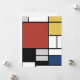 Composición con el Gran Avión Rojo, Amarillo, Negro, Gris y Blue Piet Mondrian comenzó a crear las pinturas abstractas definitivas en los años 20 por las que es más conocido. Mantenía su paleta limitada al blanco, negro y gris, además de los tres colores primarios, rojo, amarillo y azul. Sus composiciones se construyeron a partir de líneas horizontales y verticales gruesas, negras que delimitan los diversos rectángulos de color. Se trata de la simplificación de los elementos pictóricos, esenciales para la creación de un nuevo arte abstracto por parte de Mondrian. La variedad de bloques de color y líneas que difieren en la anchura crea una sensación de ritmo que fluye a través del lienzo, haciéndose eco de la vida moderna. Esta pieza asimétrica, Composición con Plano Rojo Grande, Amarillo, Negro, Gris y Azul, pintada originalmente en 1921, presenta un gran bloque dominante de color, en este cuadro rojo, un tema común visto en sus obras posteriores. Esto se ve compensado por la distribución de los bloques más pequeños de amarillo, azul gris y blanco.