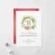 El diseño presenta una llamativa corona de color verde y rojo con monograma familiar en rojo, escritura y fuente clásica.