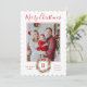 Tarjeta navideña fotográfica Preppy Red Bow Garland, Navidades de fotografía personalizados tarjeta texto editable.