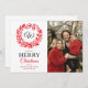 Tarjeta Festiva Monograma Red Wreath Merry Christmas Photo