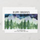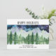 Tarjeta de felicitación vintage "Felices Fiestas" diseñada con una pintura nocturna de pinos y montañas cubiertas de nieve que se reflejan en las aguas tranquilas de un hermoso lago. Las estrellas brillan en el cielo invernal oscuro. El texto es totalmente personalizable, así que cambia tu saludo para reflejar el que elijas. Personaliza con el nombre de tu familia y el nombre de cada individuo.