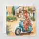 Viajando en scooter en Cerdeña Holiday Card Summer Holidays In Europe Tarjetas ilustraciones originales de Roger Smith. Tarjeta de vacaciones plana de 5,25" x 5,25" diseñada para iluminar todo el año. Tarjeta ultradelgada premium de espesor de 32 pt/ peso de 240 lb Acabado blanco de cáscara de huevo, papel de textura de algodón suave es fácil de escribir y no se va a pasar de mancha. Alta definición Hecha e impresa en los Estados Unidos.
