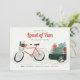 Esta tarjeta de felicitación navideña ilustrada presenta una imagen dibujada a mano de una bicicleta roja alegre que lleva una carga de golosinas, regalos y decoraciones navideñas.