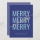 Tarjeta navideña de verificación azul para Navidades merry y brillantes