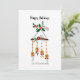 Esta encantadora y rústica tarjeta de vacaciones presenta una ilustración única dibujada a mano de un móvil festivo de invierno. Adornada con elementos clásicos de las fiestas como vibrantes bayas de acebo rojas y hojas verdes frescas, el diseño también incluye rebanadas de naranja secas caprichosas y lazos delicados. El estilo simple y moderno de la tarjeta aporta un toque de encanto acogedor de granja a tus saludos navideños.