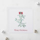 "Un encantador muérdago colgante adornado con exuberantes hojas verdes, delicadas bayas blancas y un vibrante lazo rojo en la parte superior, que captura el espíritu festivo de las tradiciones navideñas."
