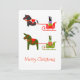 Tarjeta Festiva Mula de caballo paseo en trineo en verde y rojo