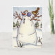 Tarjeta de saludo de invierno con muñeco de nieve y pájaro. Personaliza con tu propio mensaje de invierno o Navidad.