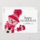 Tarjeta Festiva Muñeco de nieve feliz con gafas y sombrero rosa de
