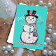 Tarjeta Festiva Muñeco de nieve lindo con bufanda Felices Fiestas
